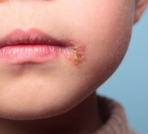 L’impétigo (impetigo vulgaris) est une infection bactérienne superficielle de la peau qui touche généralement les enfants âgés de moins de 12 ans, surtout les jeunes enfants. Cette infection est bénigne mais très contagieuse (tant que les lésions ne sont pas sèches) et se transmet par contact direct ou indirect (objets, linge ou vêtements entrés en contact avec les lésions). Les bactéries en cause sont le plus souvent Staphylococcus aureus et parfois Streptococcus pyogenes. Chez l’individu en bonne santé, cette affection peut guérir spontanément après 2 à 3 semaines, mais le traitement permet d’accélérer la cicatrisation des lésions et de limiter la dissémination des germes et la transmission de l’infection. Les complications d’un impétigo (infections des couches profondes de la peau ou des tissus avoisinants) sont très rares.1,2,4,5